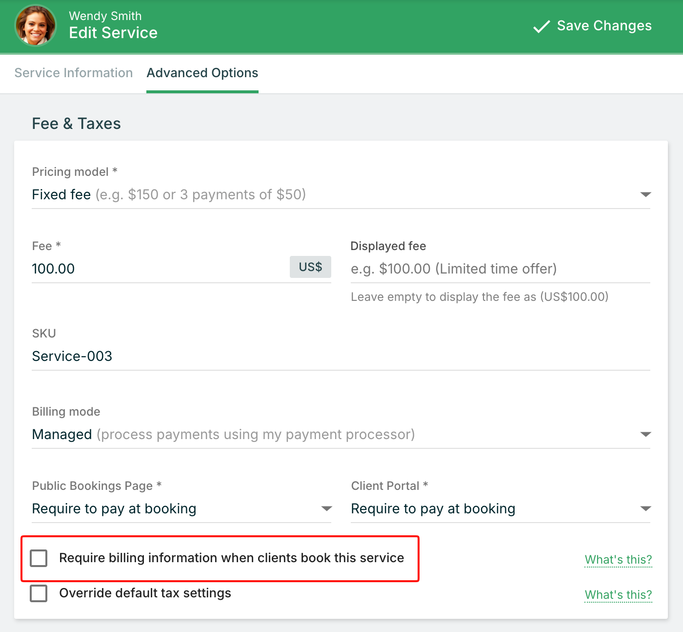 - Look for the "Require clients to save billing information" checkbox and ensure it is unchecked.