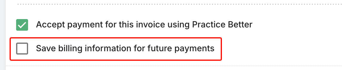 - "Save billing information for future payments" checkbox on invoices